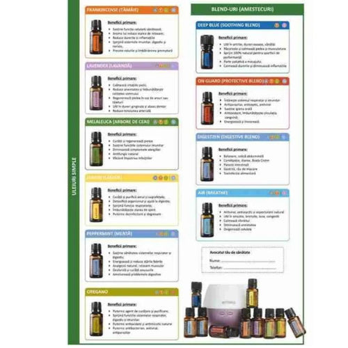 Beneficiile celor mai populare uleiuri esențiale dōTERRA - foaie A4